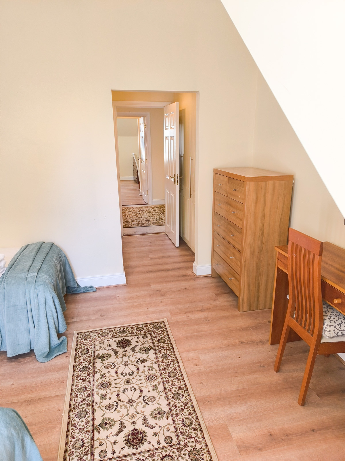 We had an excellent stay at this 3 bedroom, 3 bathroom vacation townhouse.  The unit is a two story unit with a combined kitchen/living area + 1 bedroom (1 single bed) + 1 bathroom on the main floor and then two bedrooms with ensuites on the second floor.  Bedroom 1 has a double and bedroom 2 has 2 singles.  I would suggest a double bed in the downstairs bedroom as an improvement.  Overall the property was excellent for two couples.  The property was clean and the manager (Mark) was very responsive to questions before and during the stay.  He offered great advice about the area and was available if we had questions.  The kitchen was well equipped, the living area spacey and the back deck nice during the warm spring days of Ireland.  We really liked the area - close to Swords and Malahide by car and an easy train ride in from Malahide to downtown Dublin.  Overall this accommodation exceeded our expectations and we are very happy to recommend.  PS:  Please don't mix this property up with another property at the same location managed by a different property management firm - this property was managed by Trident Holiday Homes.  The other property with poor reviews was explained to us as having a private owner who did not treat his visitors well.,