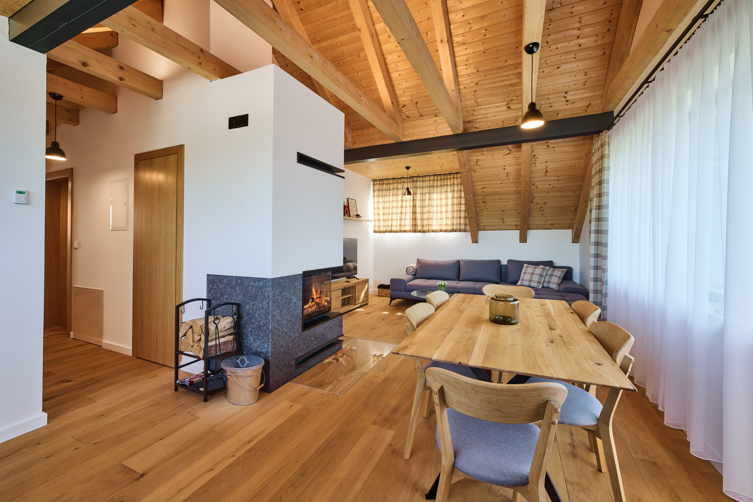 Tilbyder have, terrassemøbler, terrasse 12 m², kamin, internet (wifi), centralvarme, utildækket parkering til den samme bygning, TV.
