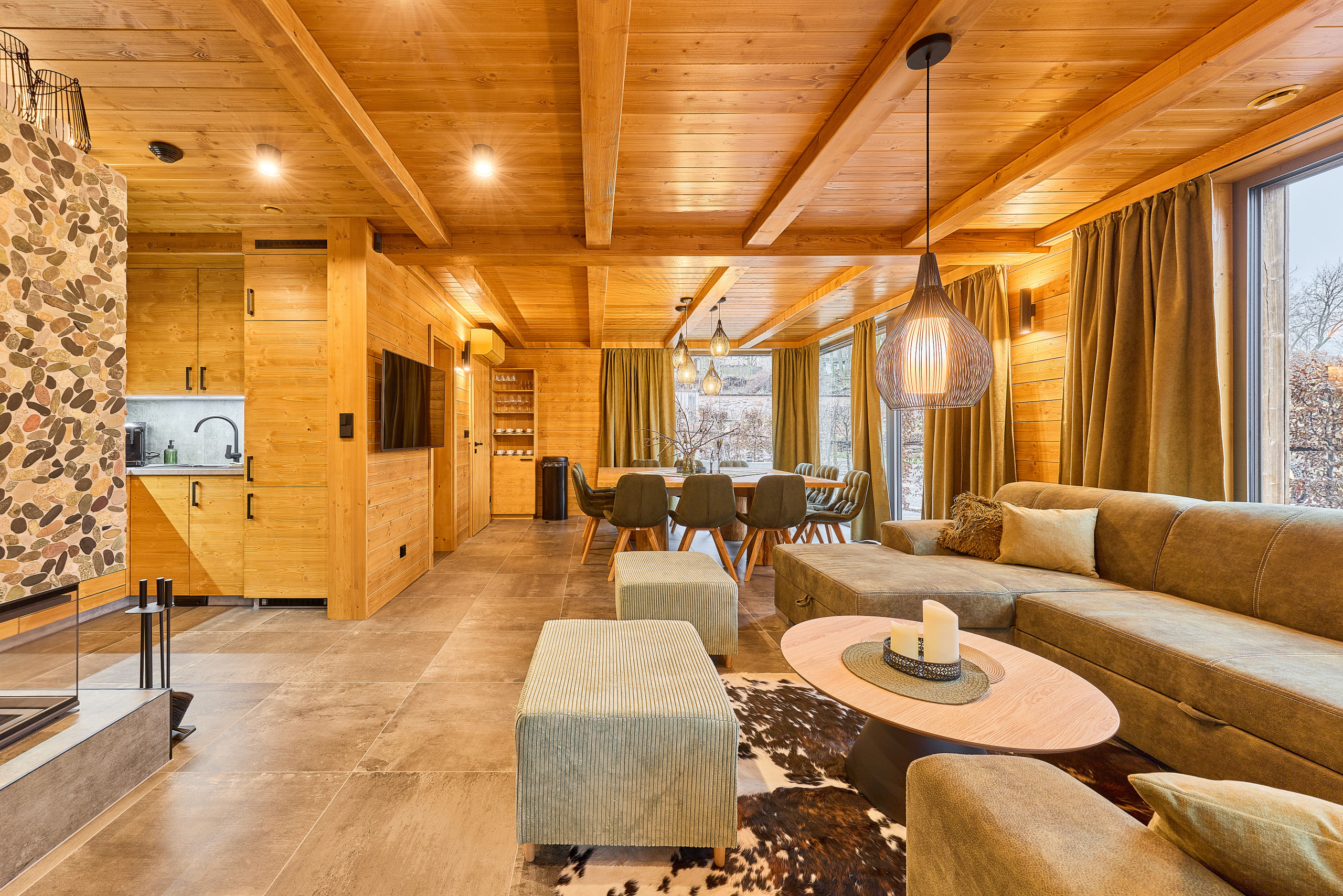 Nice og har alt udstyr bolig på 200 m², ligger i første linje til skibakke, med udsigt til have og swimming pool.