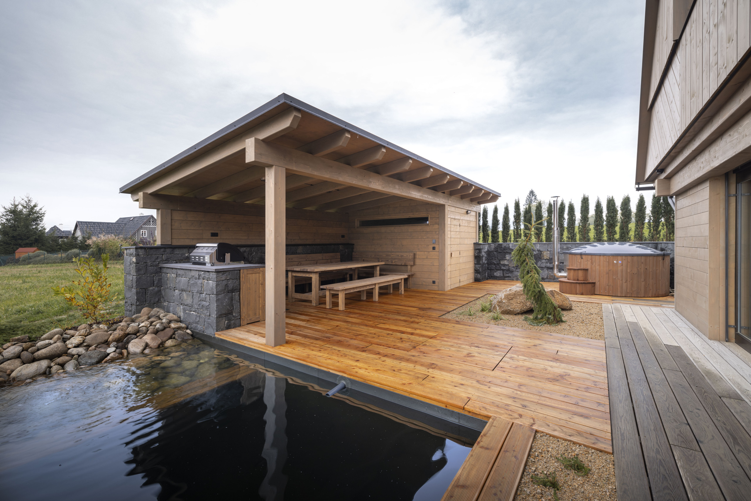 Luxusní chalupy na nádherném místě, připravené i na návštěvu dětí všeho věku. Perfektně vybavená kuchyň s moderními spotřebiči, prostorné a čisté ložnice, velká terasa s profesionálním grilem, sauna, vířivka, funkční WiFi, trampolína.. Prostě vše, cose mere