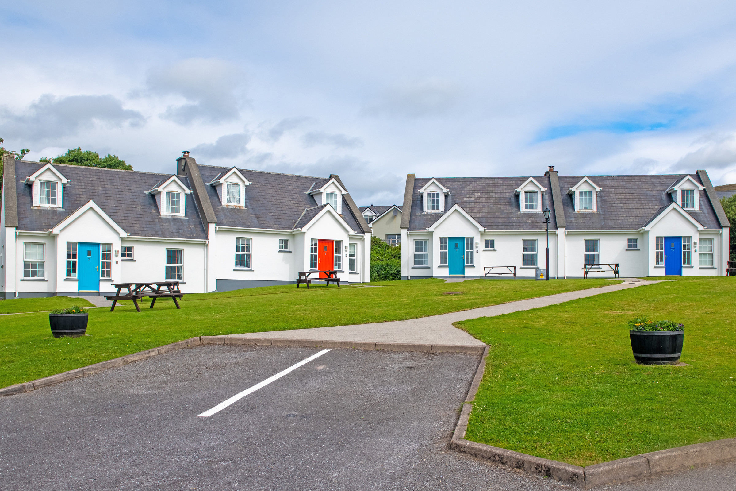 Set in a horseshoe shape around a large green area these cluster of holiday cottages in Dingle are the perfect base for a group getaway or family holiday in Kerry. These pretty seaside cottages with brightly coloured doors have 3 bedrooms and sleep 6 guests comfortably.Property layout – Ground floor: