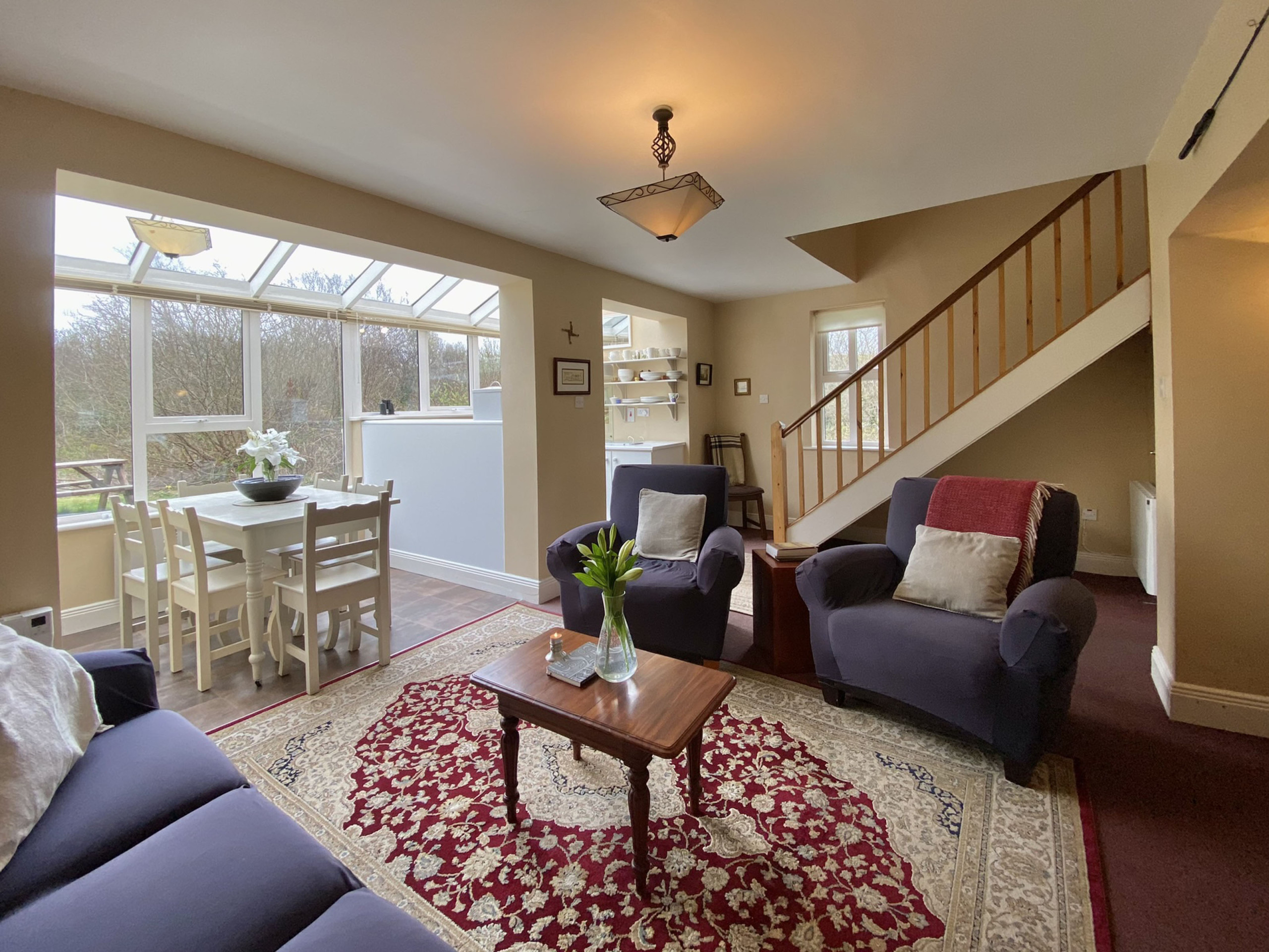 - Open-plan kitchen (all mod cons) / dining seating 6 and living area with TV