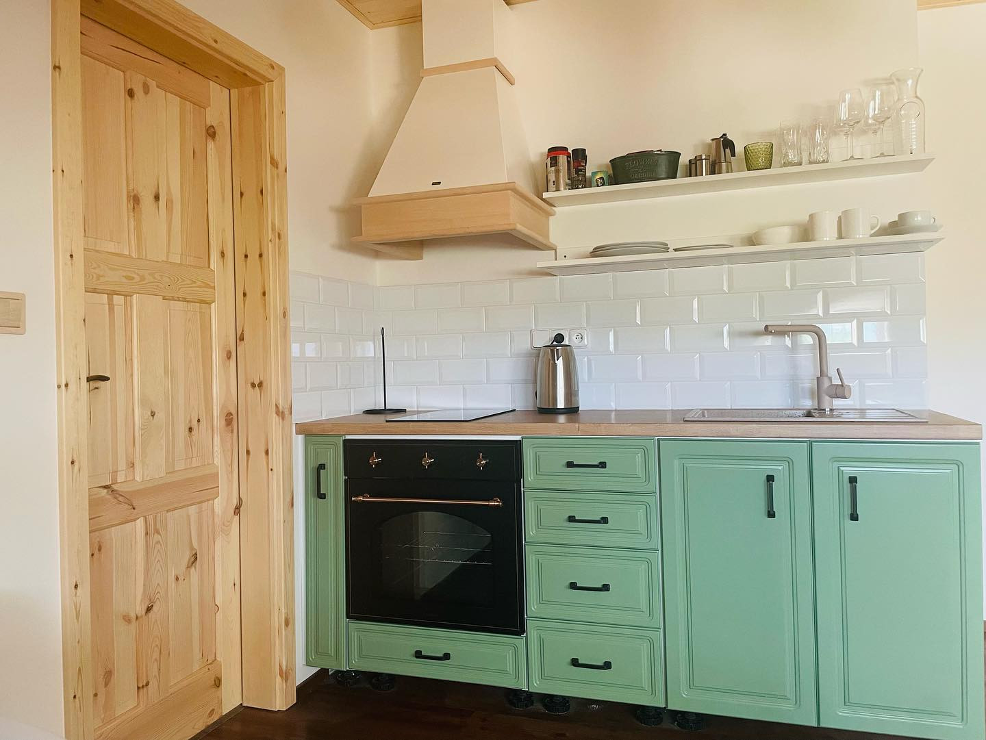 • Zolderstudio (32 m²): Dit gezellige studio biedt plaats aan 3 personen en is perfect voor een klein gezelschap. Het heeft een luxe 180 cm groot beukenhouten bed en een slaapbank voor extra slaapgelegenheid. De studio beschikt over een volledig uitgeruste kitchenette met oven en een eettafel. De badkamer is voorzien van een bad, douche en toilet – alles wat je nodig hebt voor comfort na een dag avontuur in de natuur.