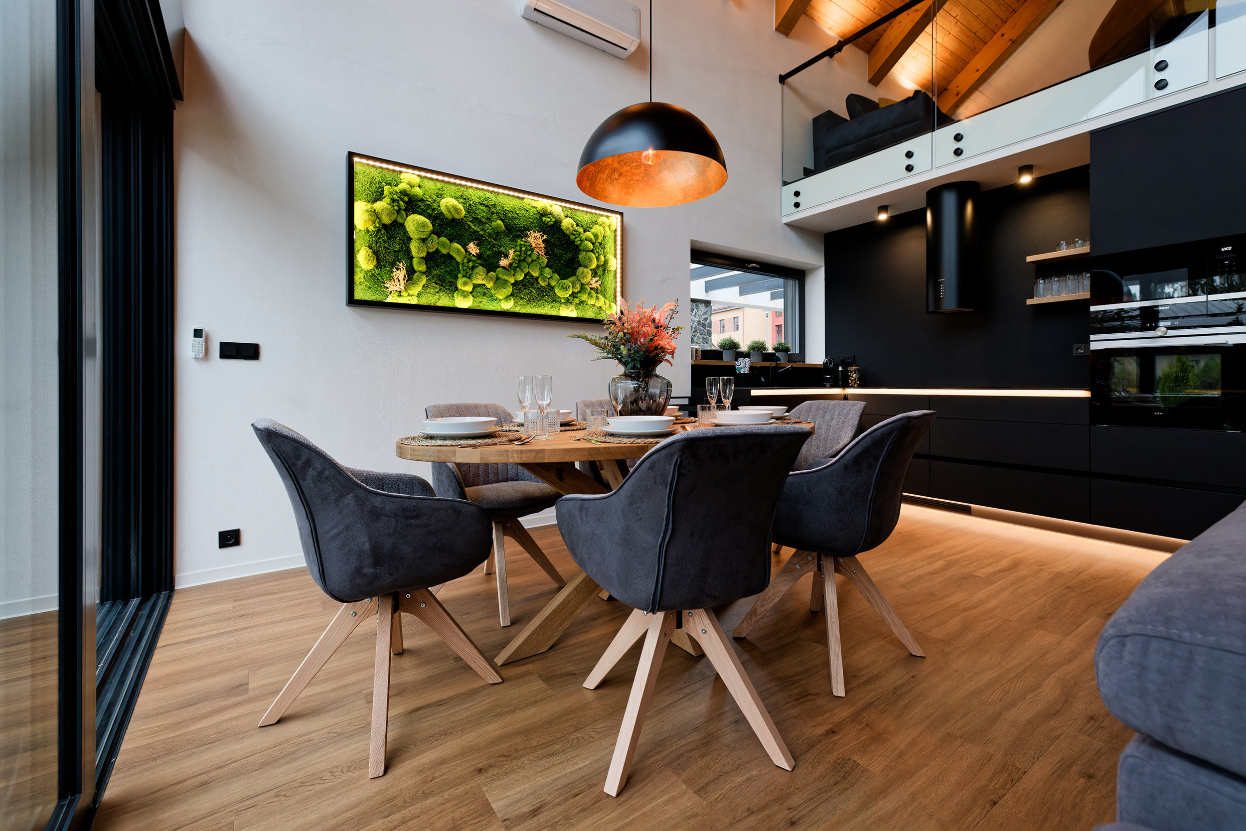 Binnen tref je een warme, moderne inrichting die je uitnodigt om je direct thuis te voelen. De gezellige woonkamer met een knisperende open haard en een grote tv is de ideale plek voor ontspannen avonden. De open keuken is volledig uitgerust en biedt alles wat nodig is voor een heerlijke maaltijd met het gezin of vrienden. Drie comfortabele slaapkamers en twee stijlvolle badkamers garanderen een zorgeloos verblijf, en de extra zithoek boven, met een slaapbank, biedt ruimte voor nog een logee of een moment van rust.