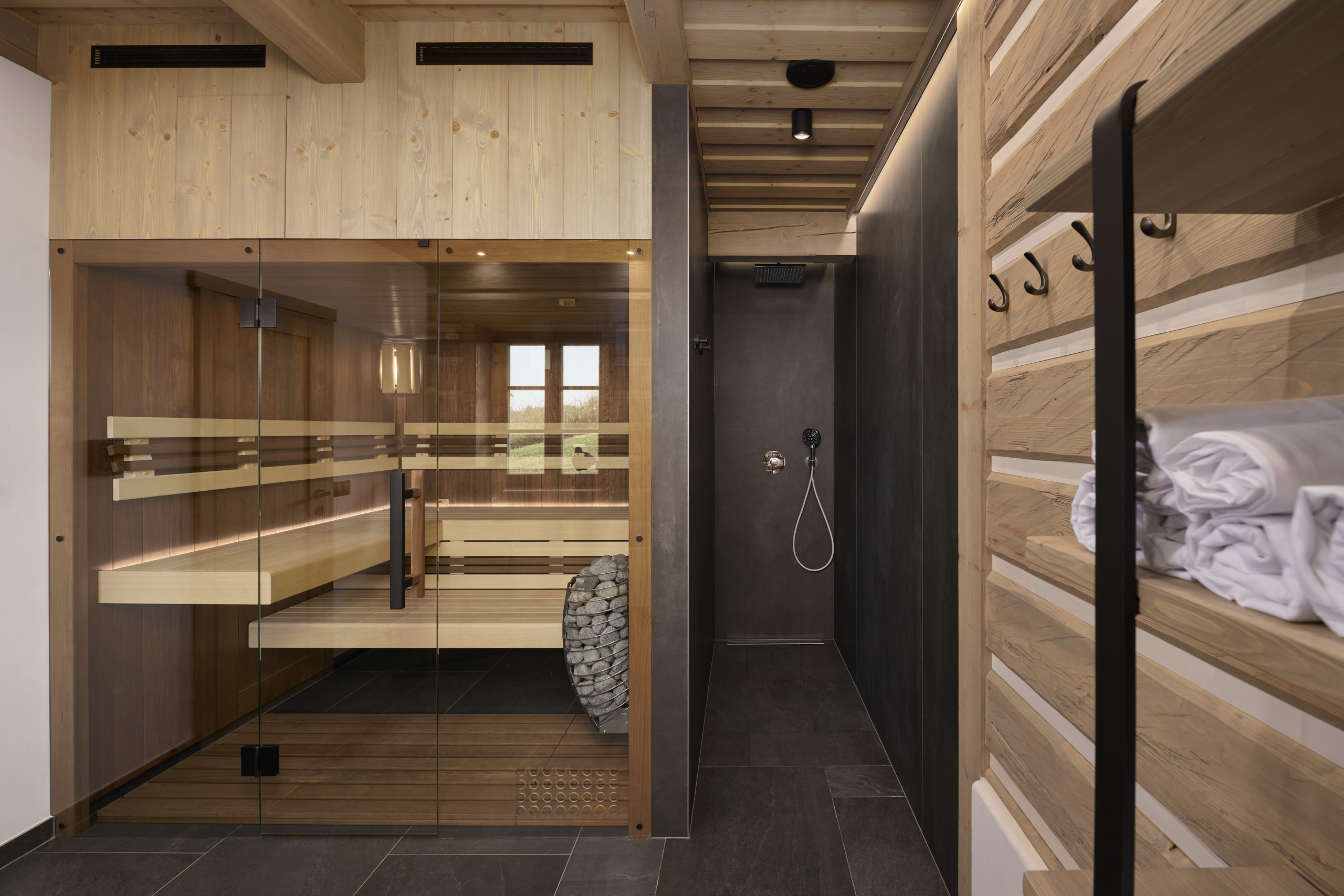 Buiten gaat dat gevoel moeiteloos verder. Kom tot rust in de sauna, steek de barbecue aan op het terras, geniet van een avond bij het kampvuur of neem op warme dagen een verfrissende douche in de buitenlucht. Voor kinderen is er volop ruimte om veilig te spelen, terwijl volwassenen ontspannen met uitzicht op het omliggende landschap.
