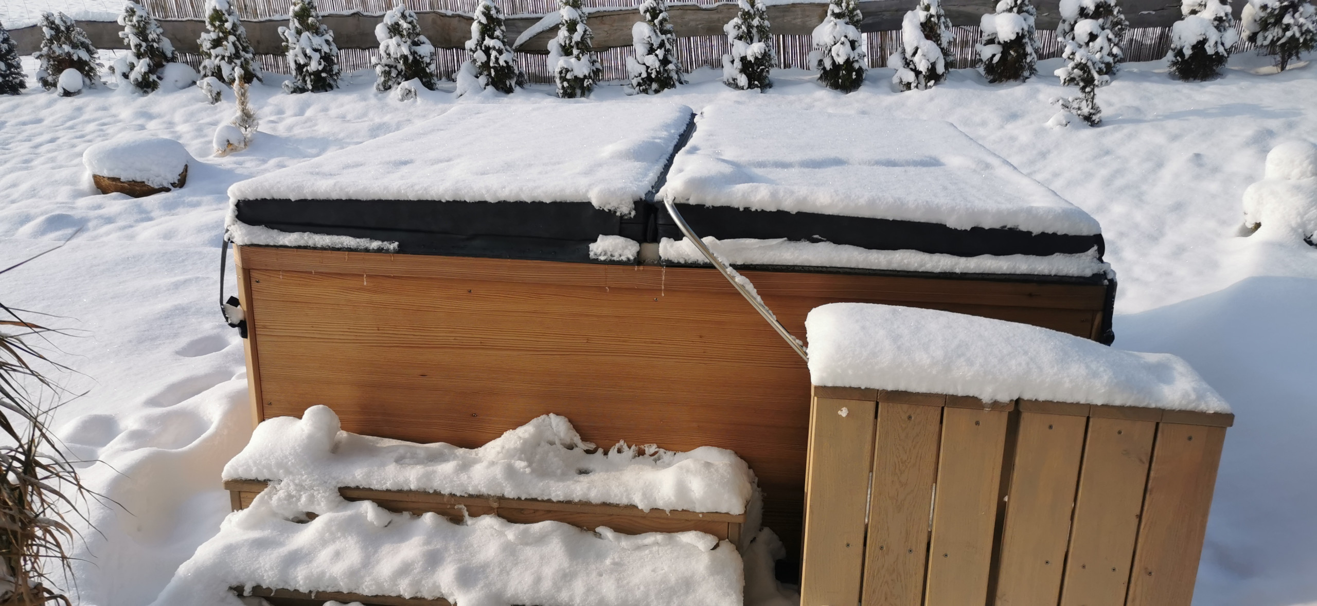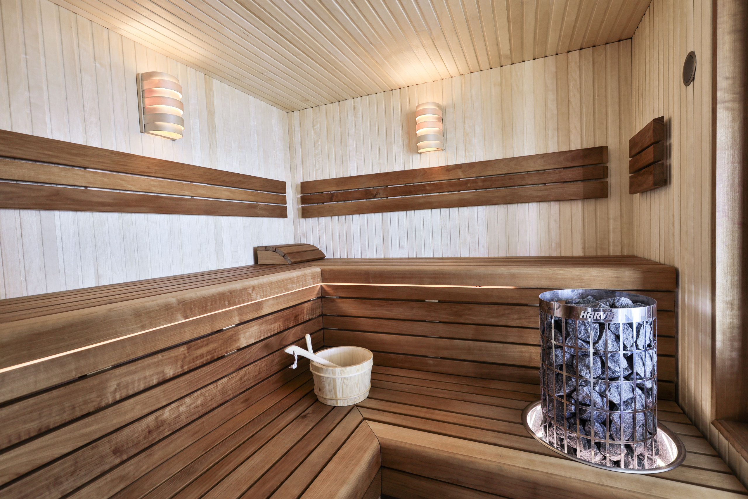 Binnen wacht een heerlijk verwarmd binnenzwembad met grote glazen wanden, zodat je het hele jaar door kunt genieten van het uitzicht. Buiten staat een jacuzzi voor je klaar. En de sauna? Die warm je op wanneer je maar wilt. Alles is privé en inbegrepen in je verblijf.