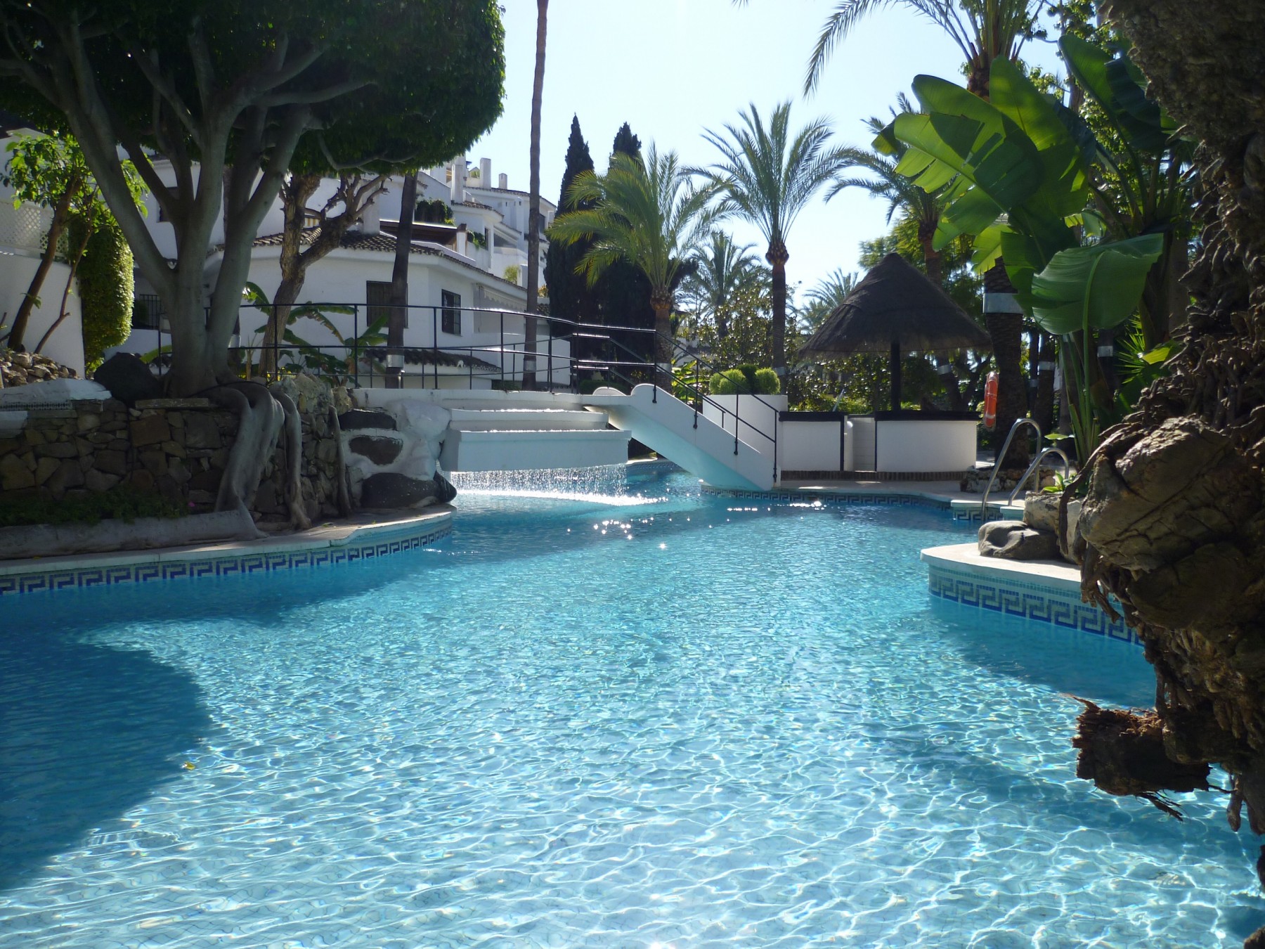La urbanización es exuberante, verde y está bellamente mantenida, con un ambiente tropical. En el lado norte y sur del complejo hay 2 áreas de piscinas adecuadas para todas las edades, rodeadas de tumbonas y mucho espacio para relajarse. La piscina de tamaño más pequeño está abierta todo el año. El área de la piscina más grande estará abierta durante los meses de julio y agosto.