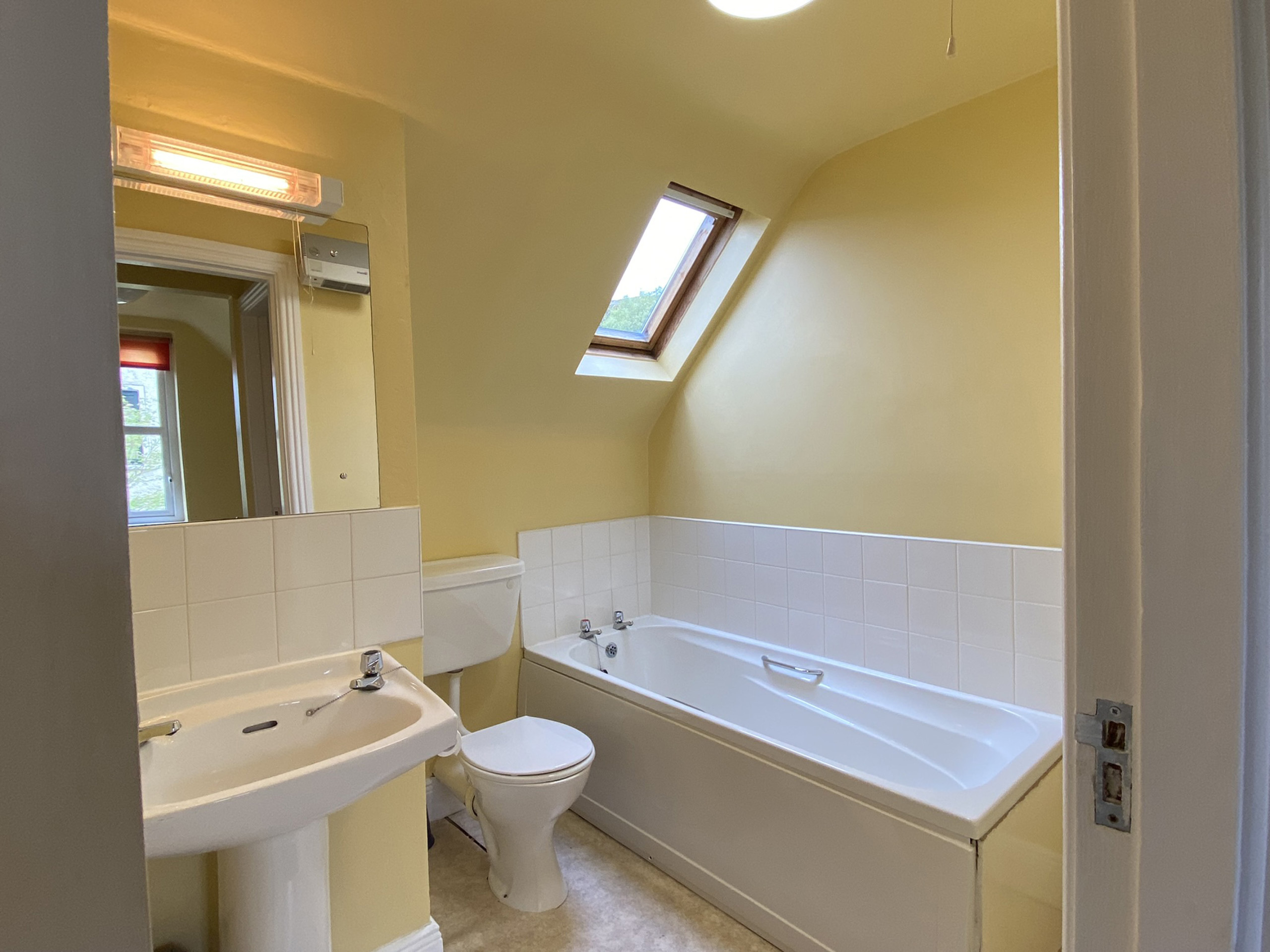 - Family bathroom with WC, hand basin and bath with overhead electric shower