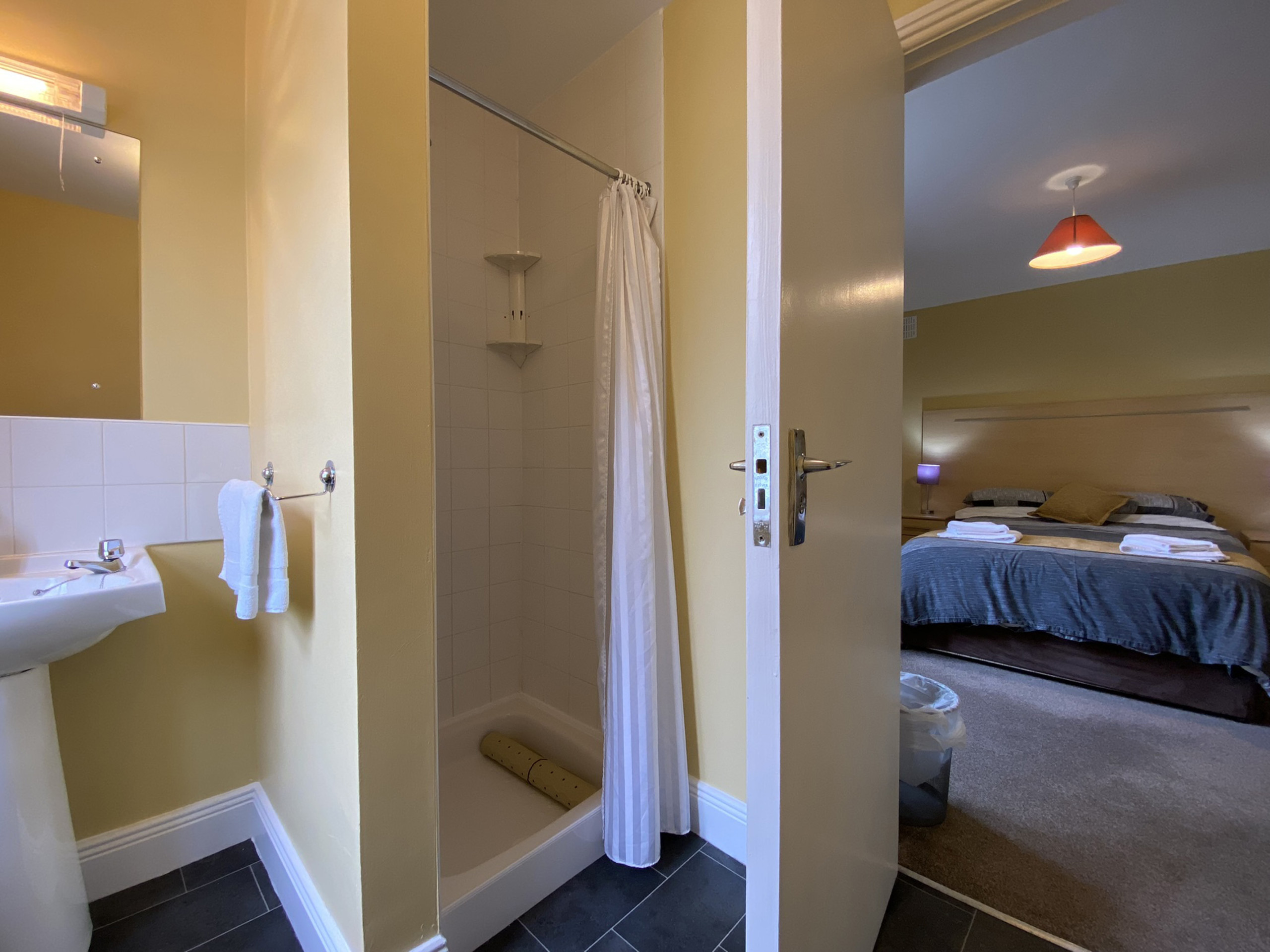 - Bedroom 1: double ensuite (WC, sink, shower) sleeping 2