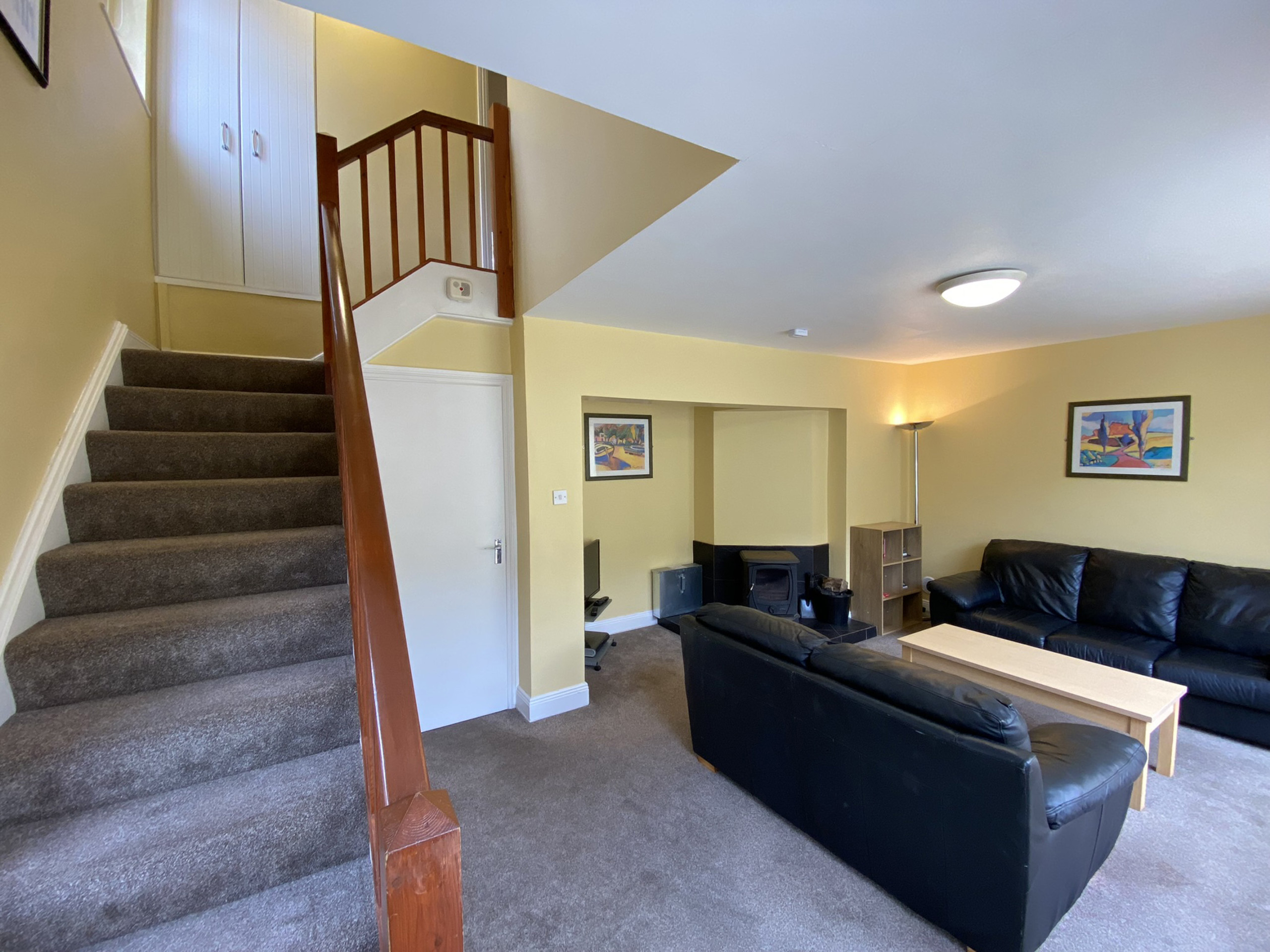 - Open-plan kitchen with all mod cons, dining space seating 6, and living area with SKY and multi-fuel stove