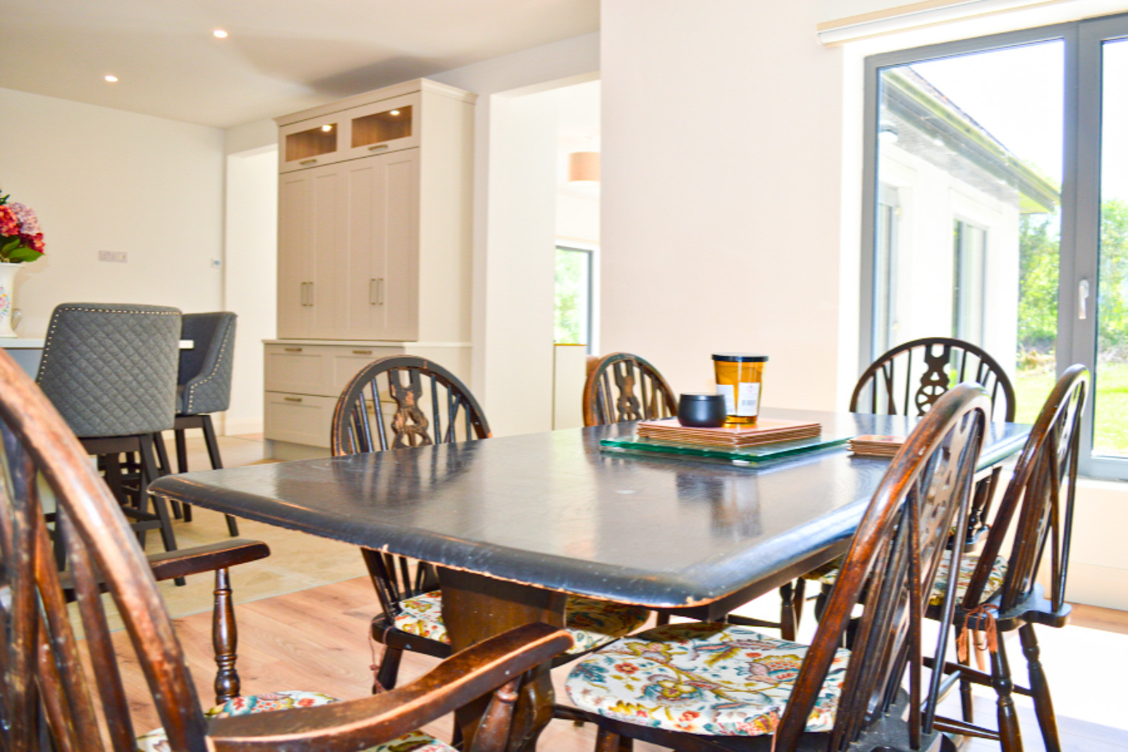 - Open-plan modern kitchen (all mod cons) and dining area (sitting 8)