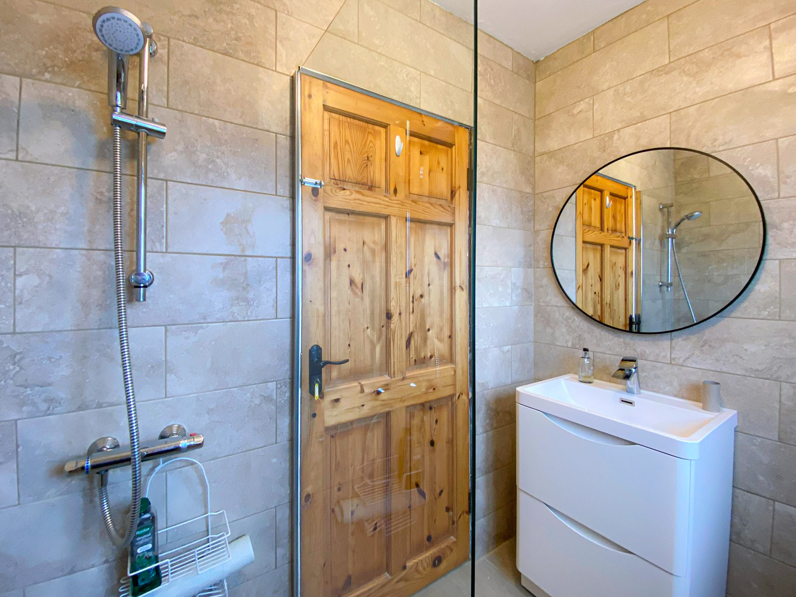 - Family bathroom with large walk-in shower, WC, and hand basin
