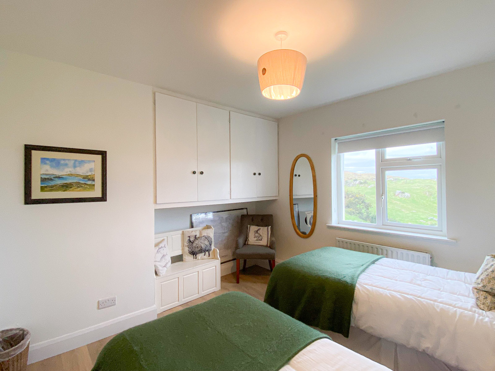 - Separate sitting room with comfort seating, wood burning stove, multi-channel TV, and views of Tully Lough, Diamond Hill, and surrounding countryside