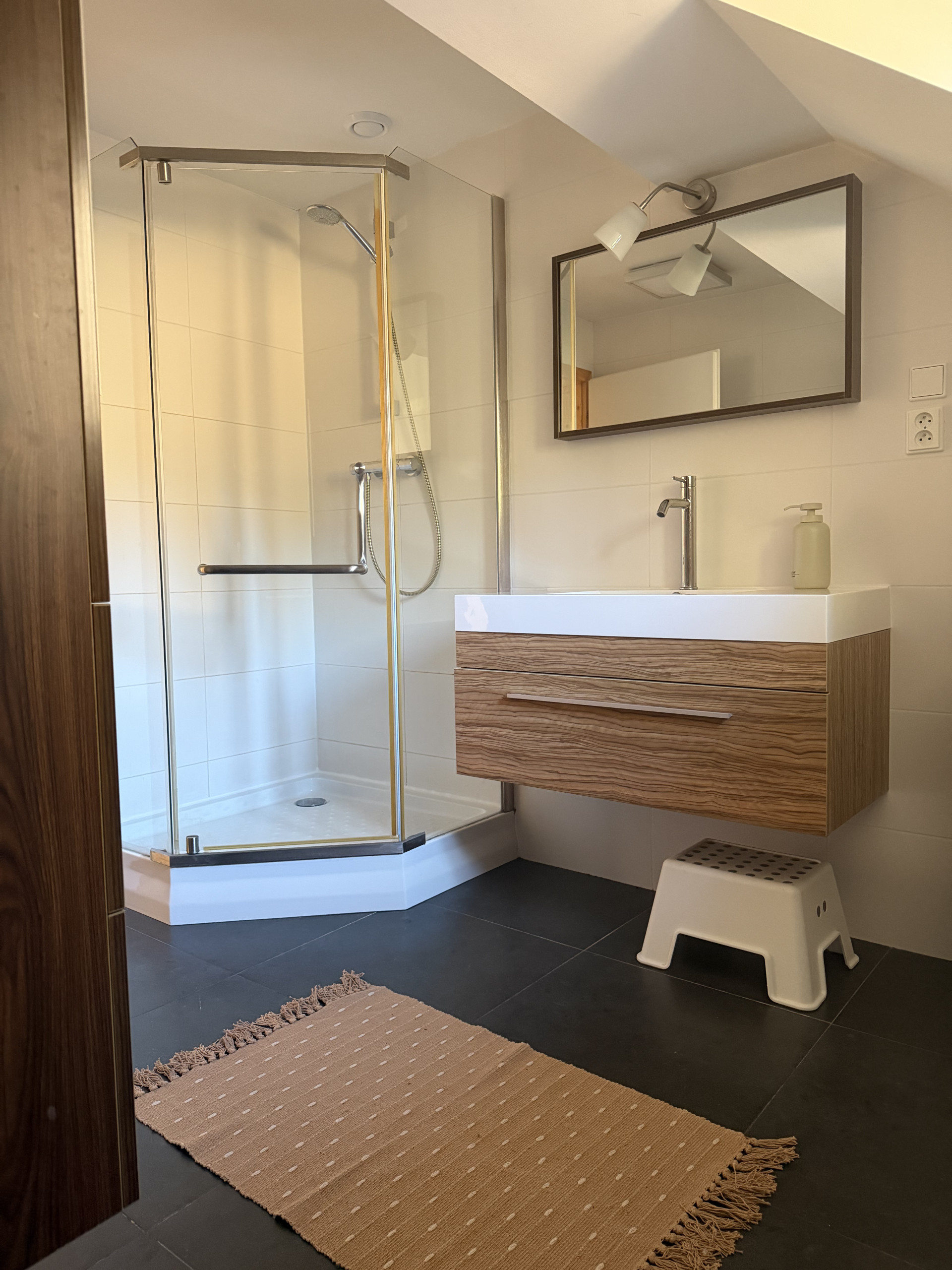 Schöne Unterkunft, in der wir uns sehr wohl gefühlt haben, gerade im Wohnzimmer mit dem Kamin. Die Unterkunft erlaubt viel Privatsphäre mit seiner Lage am Hang, in ca. 20-30min ist man auch in allen näheren Ski-Gebieten, einzig dass man nicht direkt in einem Ski-Gebiet liegt, bzw. den nahen Anschluss an einen Bus hat, machte das Auto für uns notwendig.