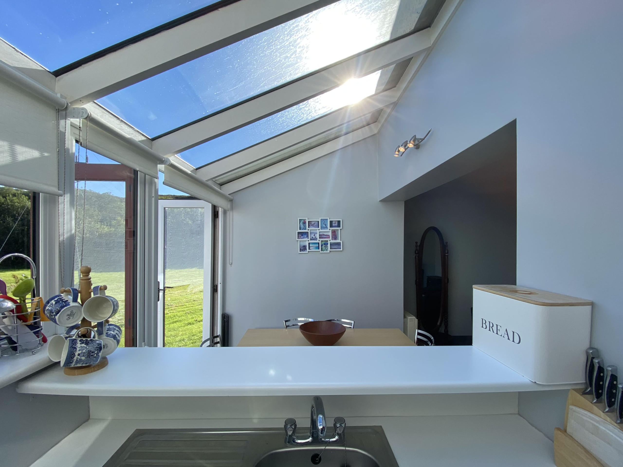- Open-plan kitchen with all mod cons, dining space seating 6, and living area with Smart TV and fireplace