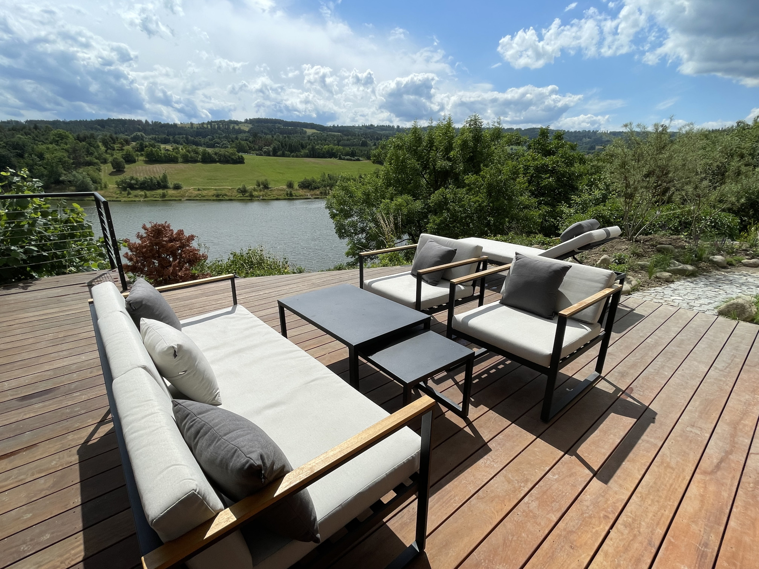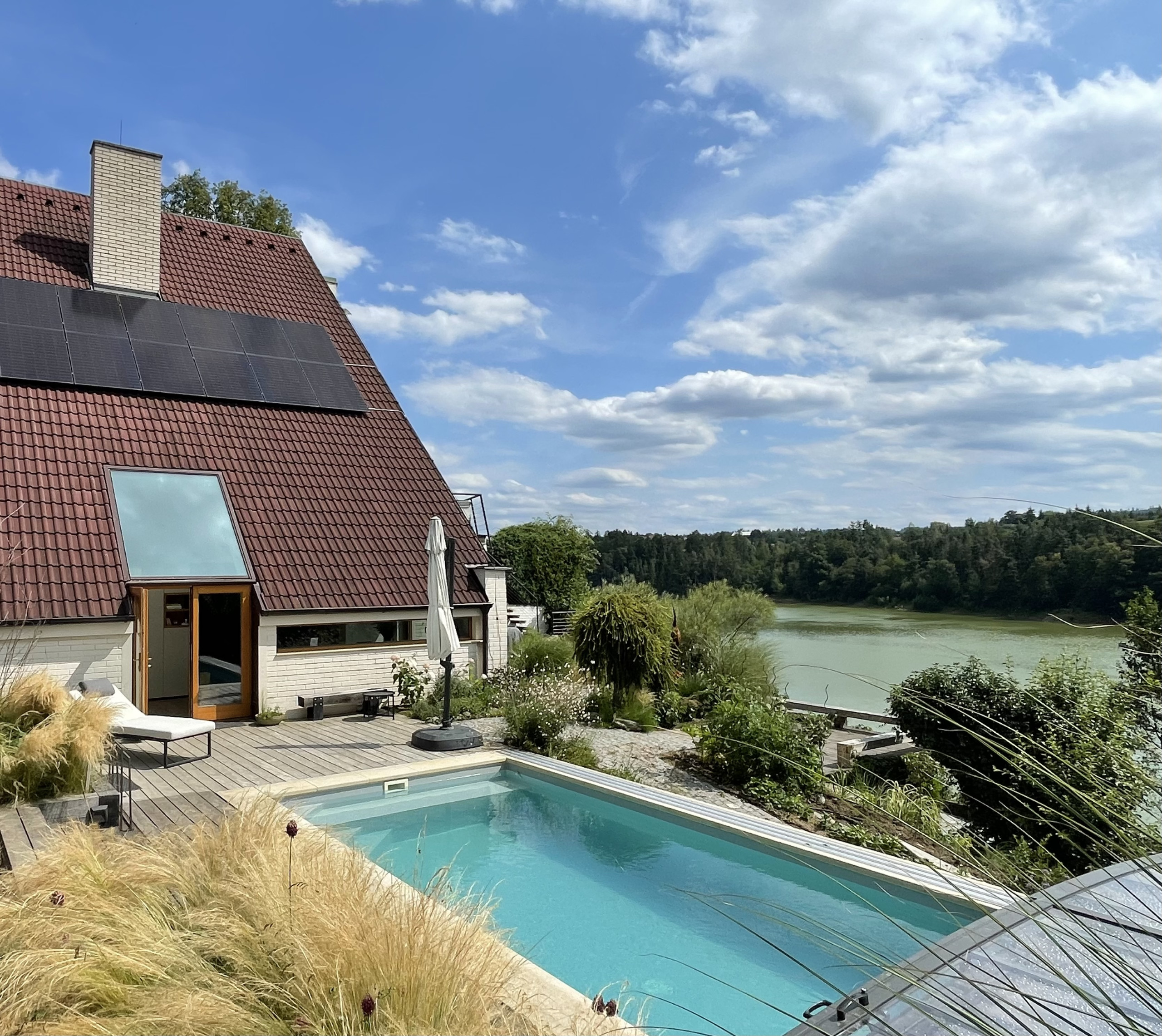 Das Haus ist groß, modern und sehr gepflegt, besonders das gemütliche Wohnzimmer hat uns gefallen. Der beheizte Pool, die Feuerstelle und der direkte Zugang zum See haben den Aufenthalt perfekt gemacht. Auch die Ladesäule fürs Auto, die bisher best ausgestatteteste Küche und die Möglichkeit zu grillen waren super praktisch. Dank der Klimaanlagen war es im ganzen Haus angenehm kühl. Radek ist ein unglaublich freundlicher und hilfsbereiter Gastgeber – wir haben uns sofort willkommen gefühlt. Absolute Empfehlung!