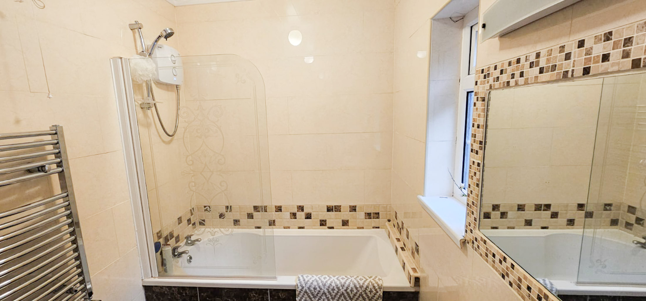 - Family bathroom with bath, shower over bath, WC and hand basin