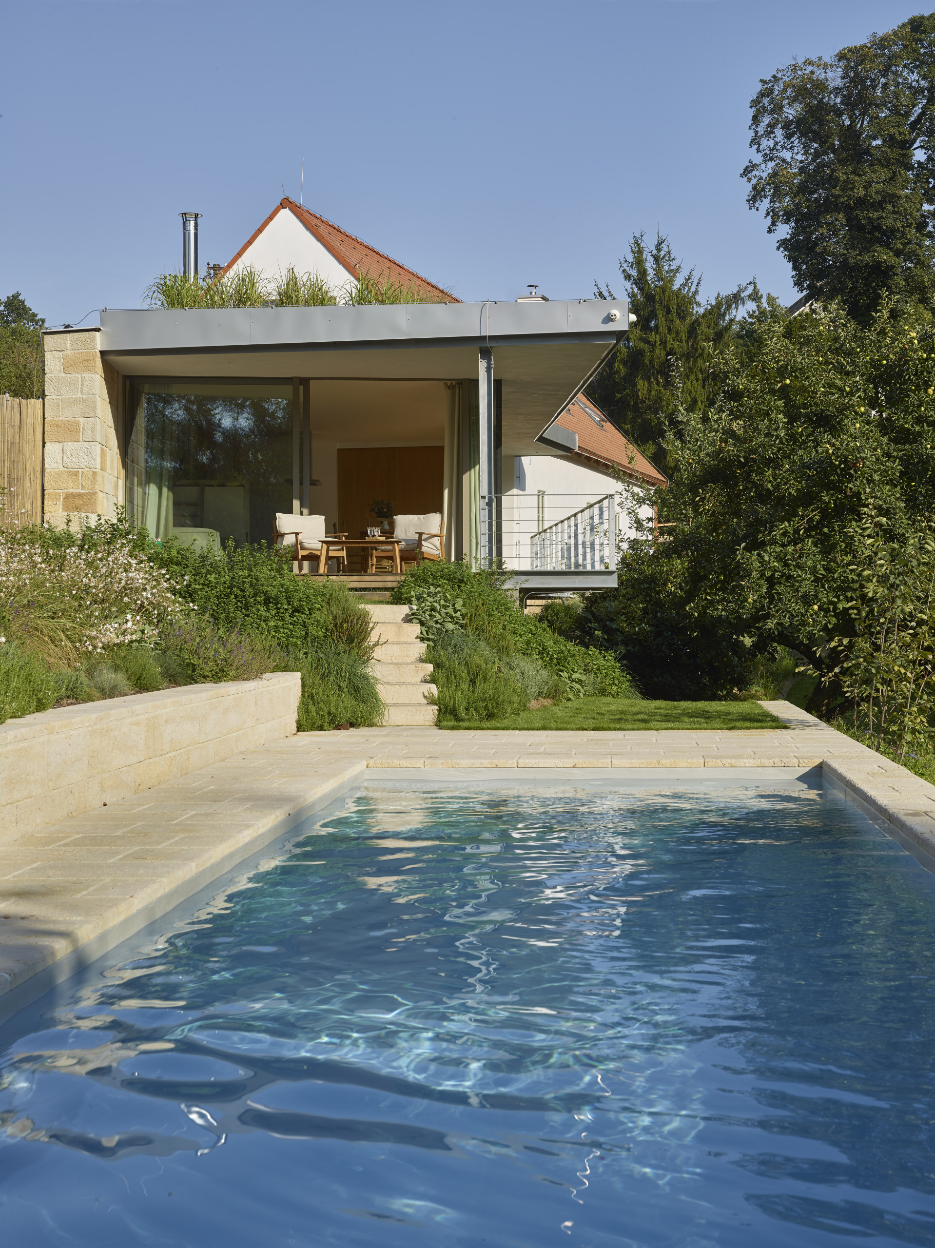 Children will find their own paradise in the playroom, filled with books, games, and even a home cinema option. Outside, they can play table tennis, try archery, or enjoy the large garden with old fruit trees and a gate leading directly into the forest. The two terraces (covered and open-air) invite you to relax and enjoy the stunning views. There is also a spacious storage area for bicycles or other equipment.