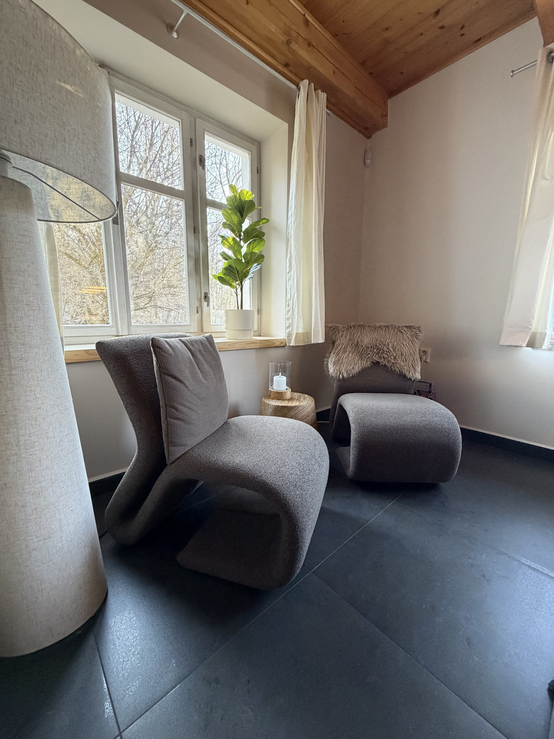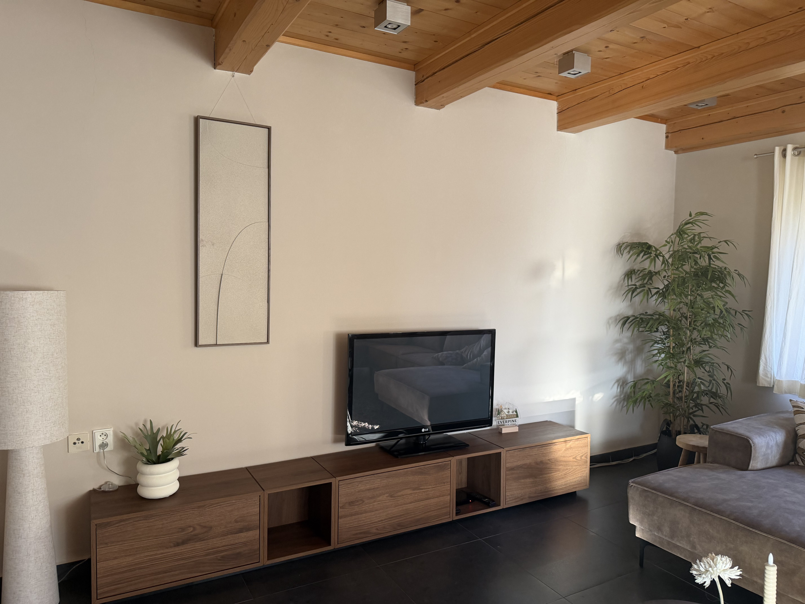 Schöne Unterkunft, in der wir uns sehr wohl gefühlt haben, gerade im Wohnzimmer mit dem Kamin. Die Unterkunft erlaubt viel Privatsphäre mit seiner Lage am Hang, in ca. 20-30min ist man auch in allen näheren Ski-Gebieten, einzig dass man nicht direkt in einem Ski-Gebiet liegt, bzw. den nahen Anschluss an einen Bus hat, machte das Auto für uns notwendig.