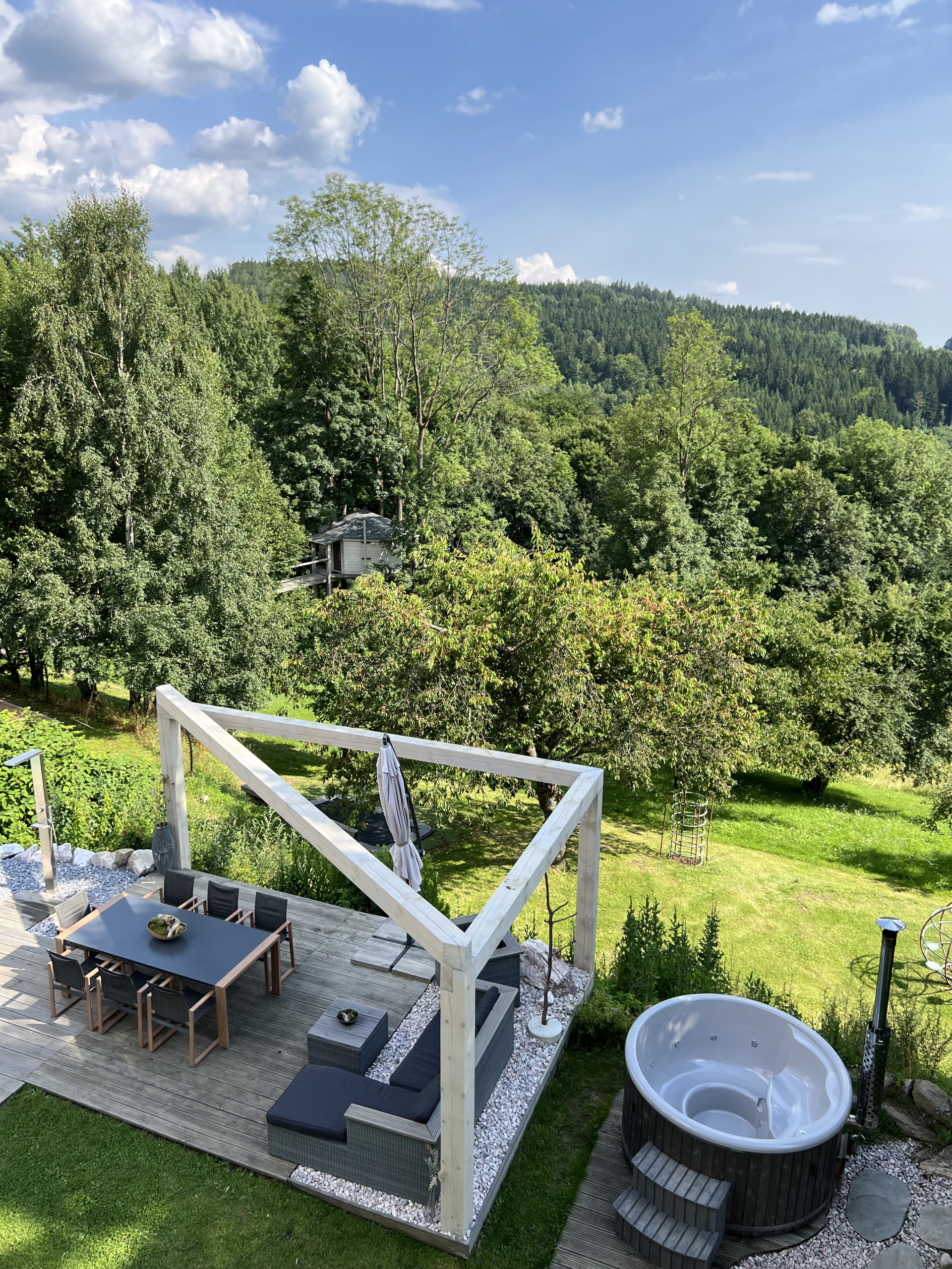 It's built by a small road at the edge of a steeper hill, offering a large garden, cool private view of the beautiful nature in the valsee more